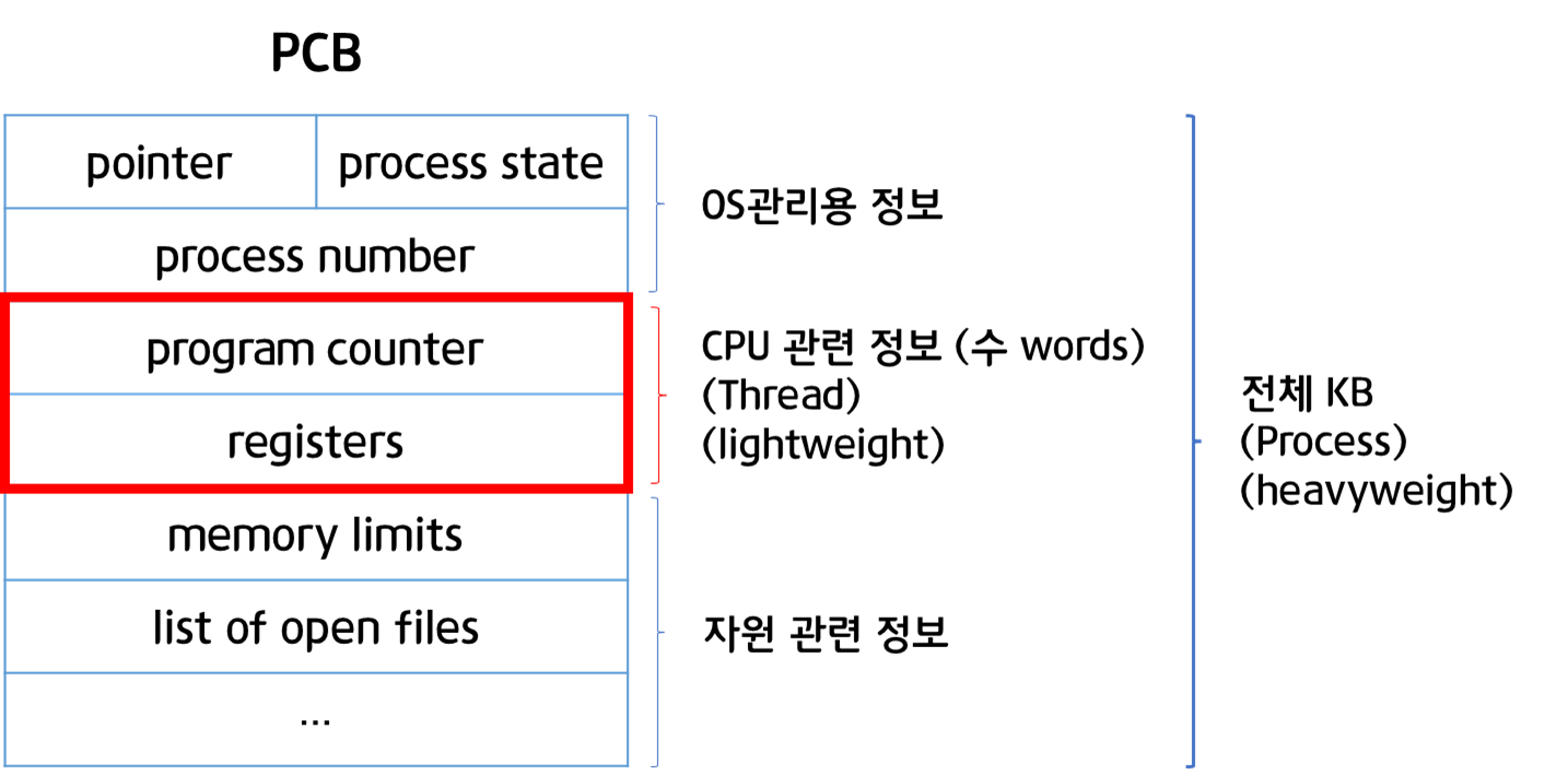 · 전통적인 개념의 heavyweight process는 하나의 thread를 가지고 있는 task로 볼 수 있음