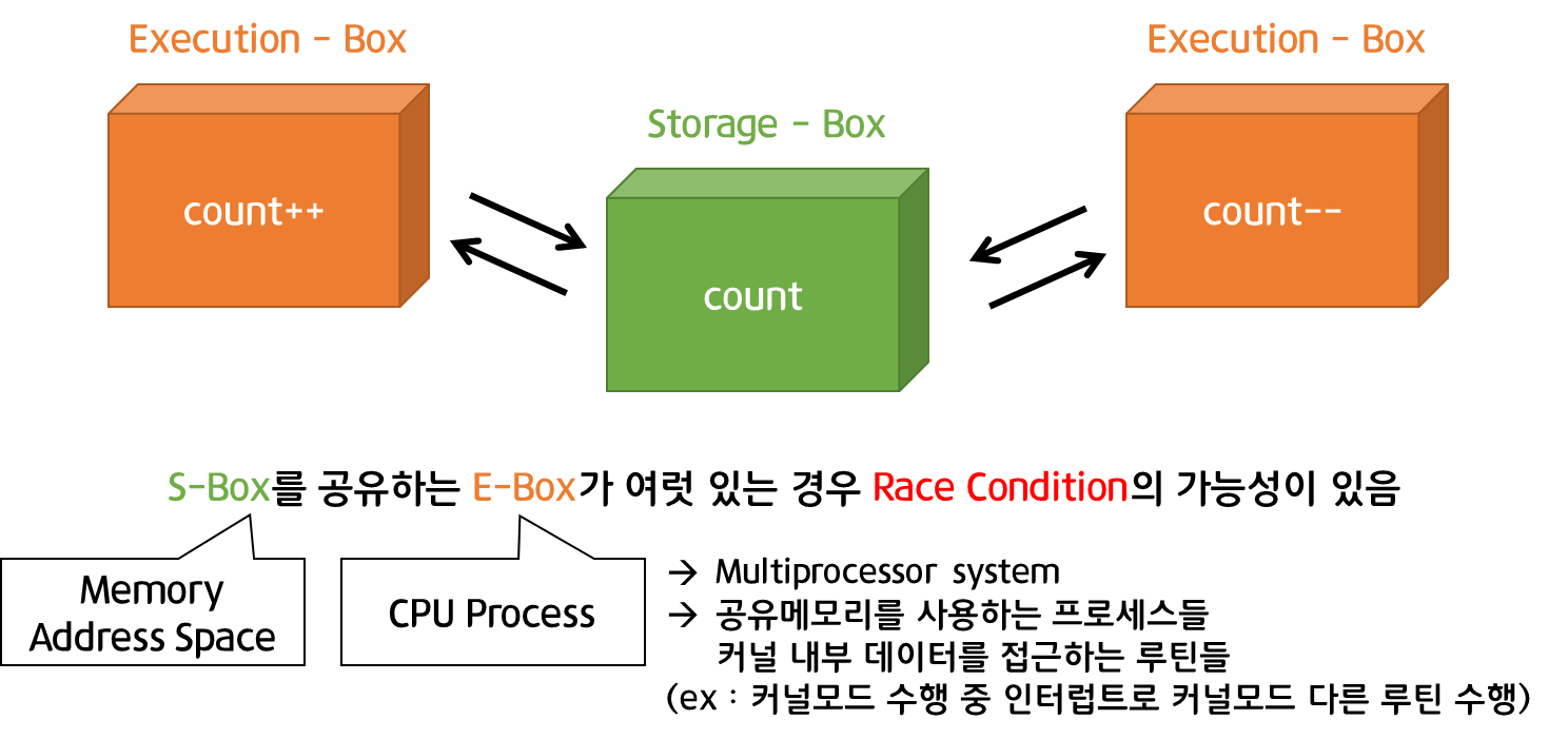 - Race condition을 막기 위해서는 concurrent process는 동기화(synchronize)되어야 함