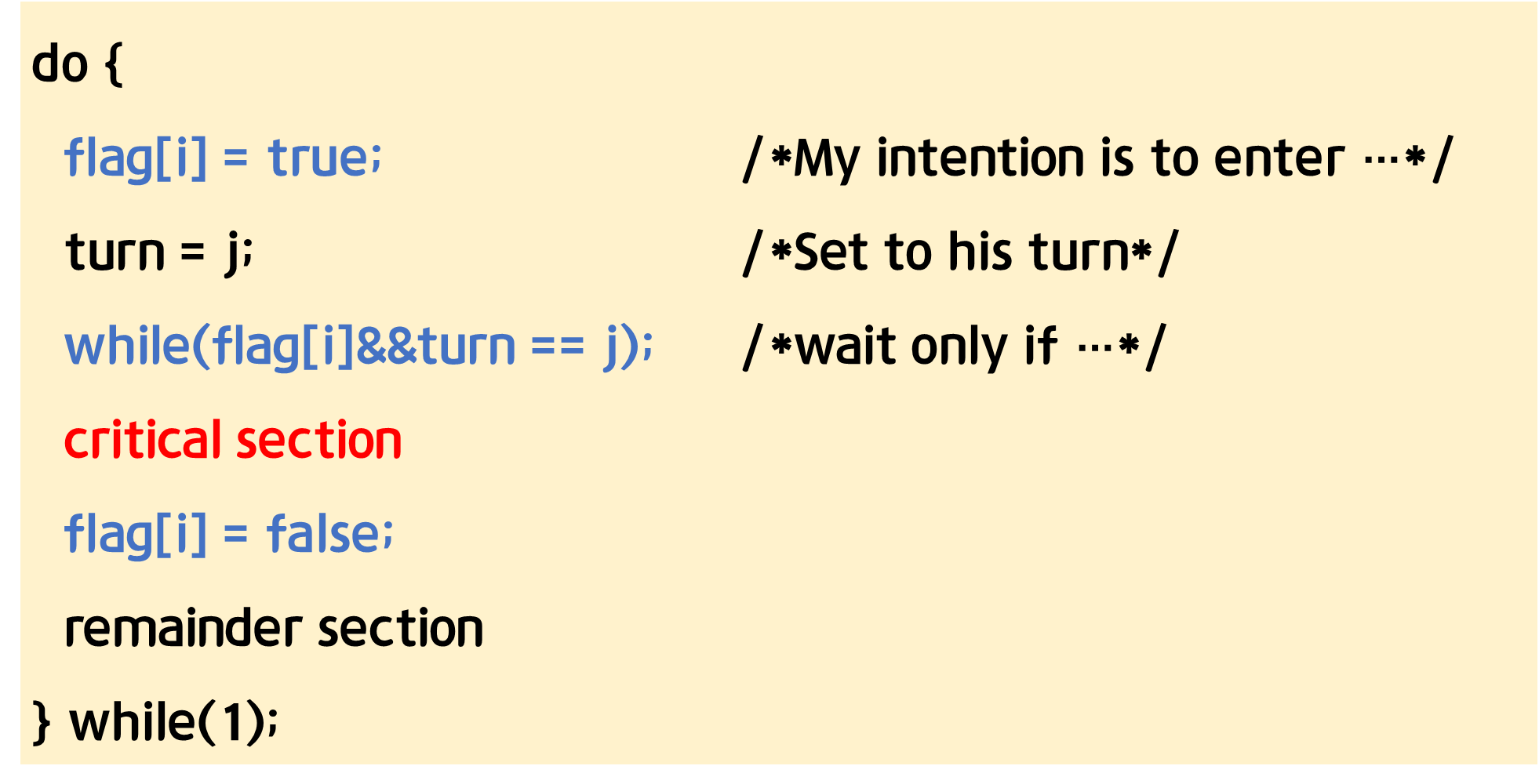 turn은 상대방에게 준 후 상대방의 상태와 나의 상태를 보고 critical section 사용