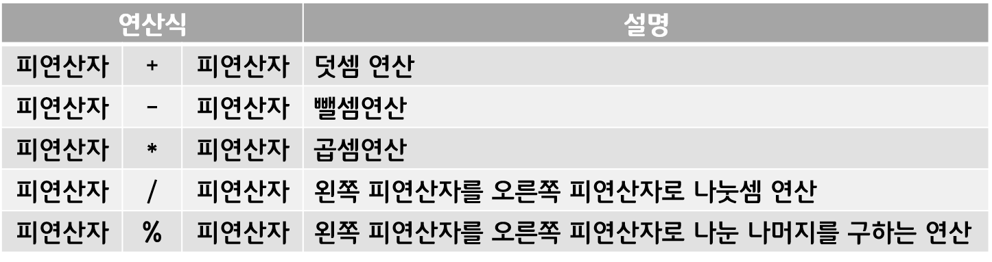 - 그 외의 연산자는 2개의 피연산자를 요구하므로 모두 이항 연산자