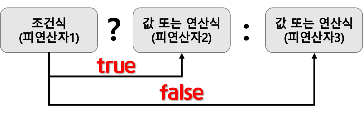 : 3개의 피연산자를 필요로 하는 연산자로? 앞의 조건식에 따라 콜론(:) 앞뒤의 피연산자가 선택