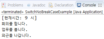 - case 끝에 break가 없으면 다음 case의 변수 값 상관없이 연달아 실행됨.