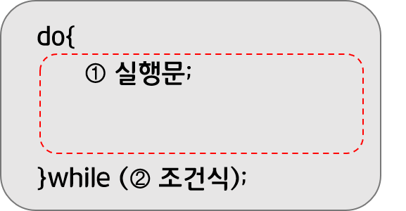 - do-while문이 처음 실행될 때 실행문(①)을 우선 실행