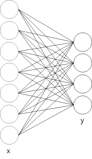 그림에서 왼쪽 노드들이 입력 값인 x가 되고 오른쪽 노드들이 y가 된다.