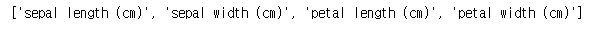 사이킷런의 붓꽃(Iris) 데이터는 다음과 같이 구성되어 있다.