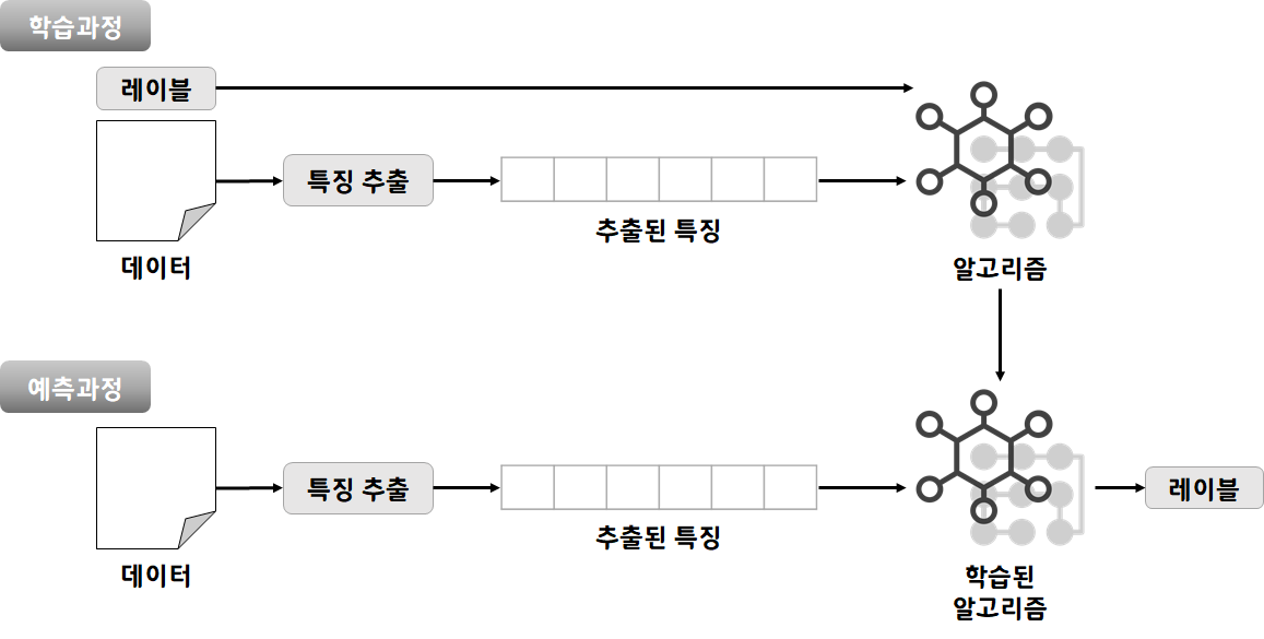 위 그림과 같이 지도학습은 글에 대해 각각 속한 범주에 대한 레이블이 이미 주어져 있다.