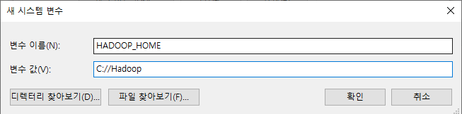 예를 들어, C:\Hadoop\bin\winutils.exe처럼 입력해주면 된다.