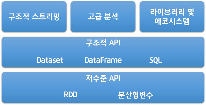 스파크는 파이썬, 자바, 스칼라, R의 총 4가지의 언어를 지원하고 SQL 뿐만 아니라 스트리밍, 머신러닝에 이르기까지 넓은 범위의 라이브러리를 제공한다.