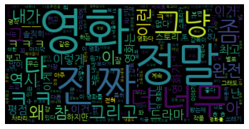 한글을 제외한 모든 무자 제거, 형태소 토크나이징, 불용어 제거 순으로 진행되는 함수를 만들었다.