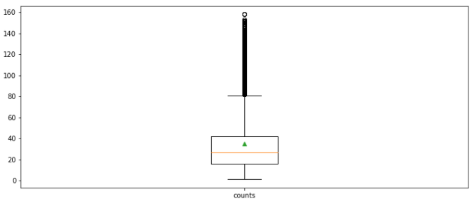 리뷰 길이 제 3 사분위: 42.0